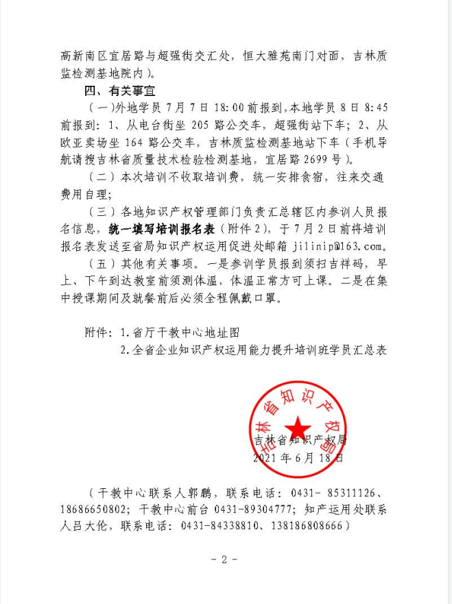 吉林省知識(shí)產(chǎn)權(quán)局:關(guān)于舉辦全省企業(yè)知識(shí)產(chǎn)權(quán)運(yùn)用能力 提升培訓(xùn)班的通知
